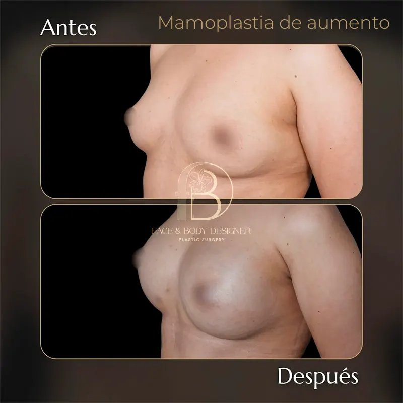 Según los deseos de la paciente, se puede hacer transferencia de grasa autóloga en el área para un resultado más natural, sin necesidad de implante.